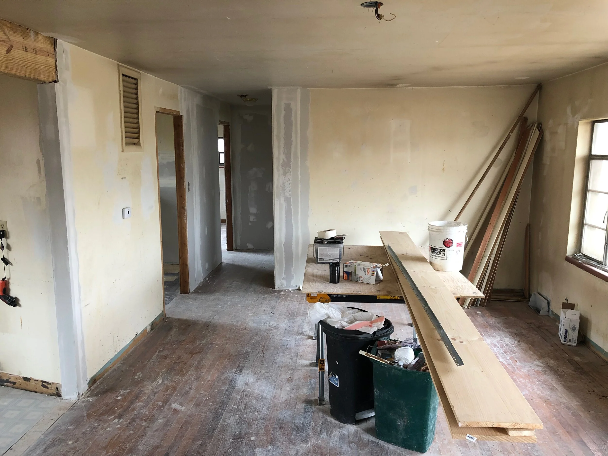 The theme of this week is Drywall! Filling all of the holes, spackling and sanding.